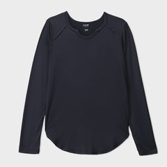 Performance tee with front and back curved hem, designed for a flattering fit, maximum mobility, and breathable, moisture-wicking comfort.