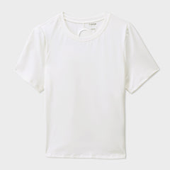 Women’s regular tee with a round slit hem for a modern, easy fit.